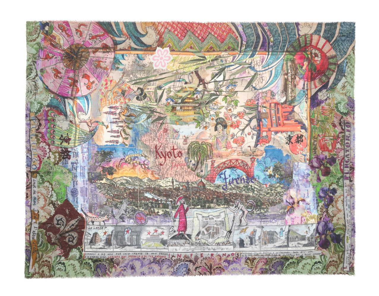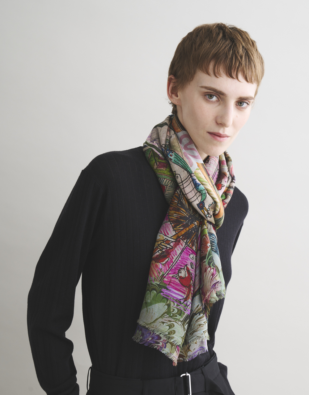 これを記念してフィレンツェのアーティスト、Paolo Fiumi(パオロ・フィウミ)の作品を再構成してストールを作成しました。