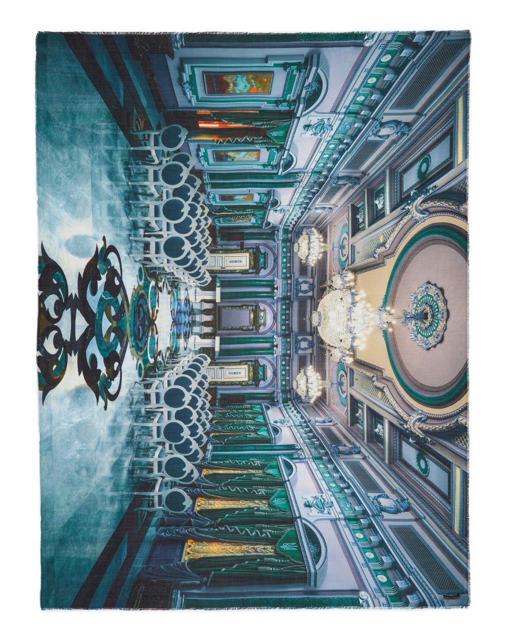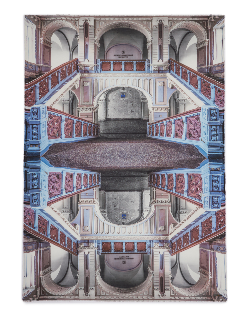 上下反転して反復した像は贅沢なピュアシルクの
